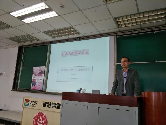 讲座中,廉德瑰教授引经据典,深入浅出地讲述了樱花的魅力。从樱花与日本民族、日本人的国民性、军国主义、宗教、外交、日本文化的原点等方面阐释了日本人的樱花情结。为与会师生绘制了一幅极具内涵的日本“樱花文化”详图。在樱花与日本民族环节中,将樱花与菊花、牡丹、梅花等花相比较,引起了老师和同学的极大兴趣。