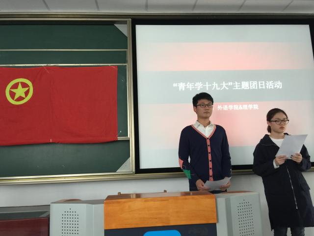 主题团日活动 今后,外语党委还将进一步深入组织和开展好十九大精神的学习宣传活动,推进“两学一做”常态化,采取基层党支部点线面结合的方式,以灵活多样的形式、丰富多彩的活动,组织师生党员切实学懂弄通做实党的十九大精神,努力在新时代开启新征程续写新篇章。