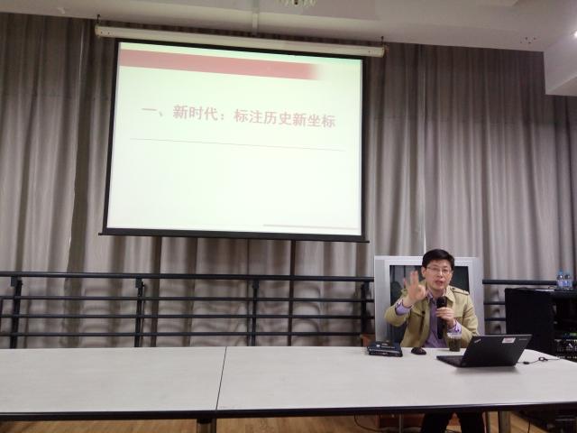 陈老师从十九大后习近平总书记带队瞻仰一大会址讲起,以大量翔实的案例、生动的语言,紧紧围绕“中国特色社会主义进入新时代”这一主题,着重阐述了十九大报告中所体现的新时代、新使命、新思想、新征程。