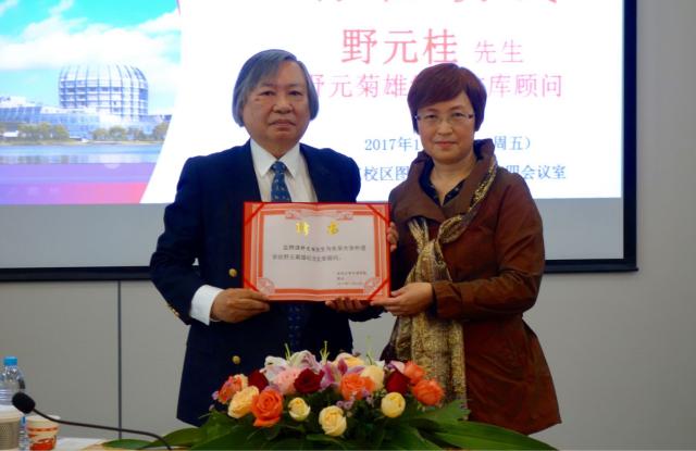 11月10日,我校“野元菊雄纪念文库”顾问野元桂先生、原立命馆亚洲太平洋大学野元千寿子教授访问我校。上午十点,304永利集团举行“野元菊雄纪念文库”顾问聘任仪式,赵晓临院长向野元桂先生颁发顾问证书,并发表了热情洋溢的讲话,高度赞扬日本国语学泰斗野元菊雄教授在日语系建系初期向我校图书馆捐赠近万册自家藏书的义举。野元桂先生回顾了父亲当年决定向我校赠书的情景,并表示将一如既往地关心304永利集团“野元菊雄纪念文库”的建设工作,为日语专业的特色建设贡献力量。