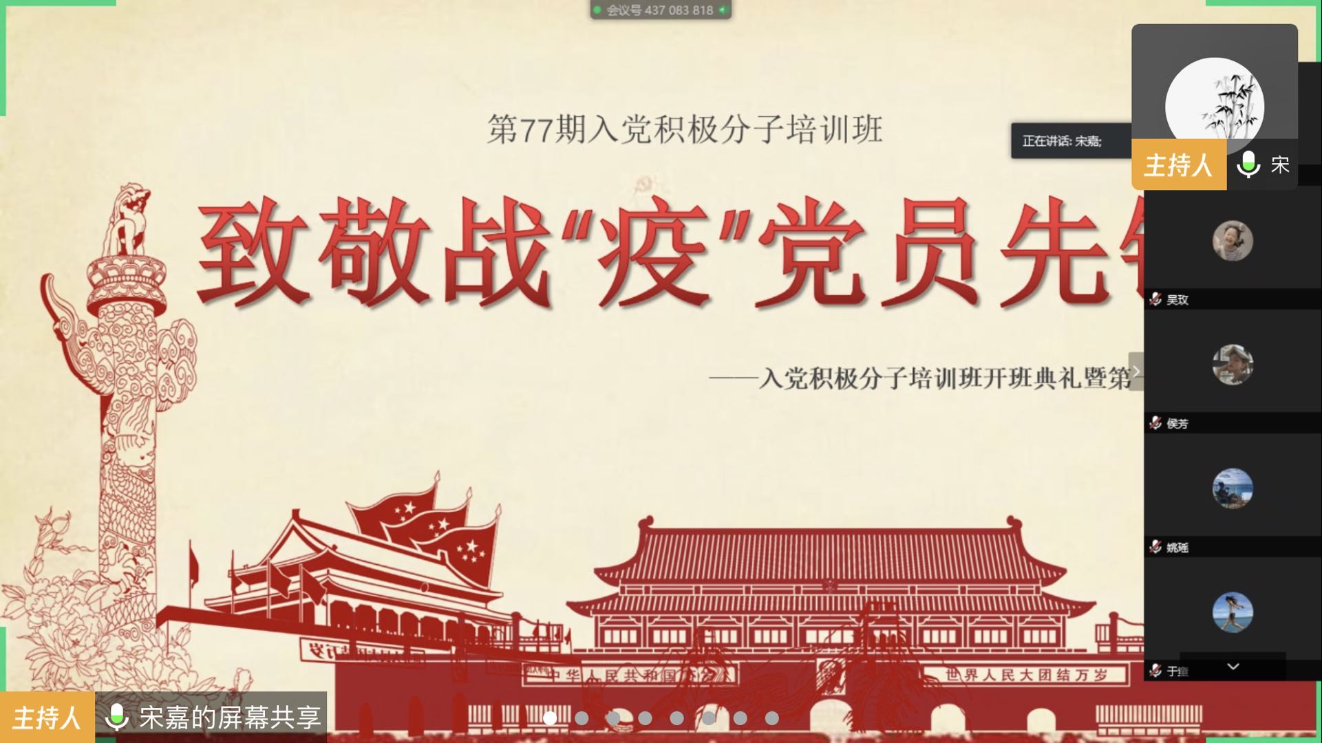 随后学员们进行了交流发言。大家纷纷讲述了他们看到的在今年抗击新型冠状病毒的战役中涌现出的一批的英雄事迹,分享了他们的体会和感悟。