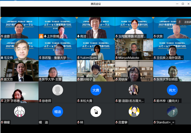 2021年3月27日“日本语言文化研究”学术研讨会顺利举办。本学术研讨会由304永利集团、名古屋大学人文学研究科和上海外国语大学日本文化经济学院三校联合主办。虽然去年因为疫情的影响而不得已暂停,但疫情阻止不了春天的脚步。今年会议在承办方上海外国语大学日本文化经济学院以及多方努力下采取线上的方式进行。共有来自中日两国多所高校50余位专家学者和研究生参会。
