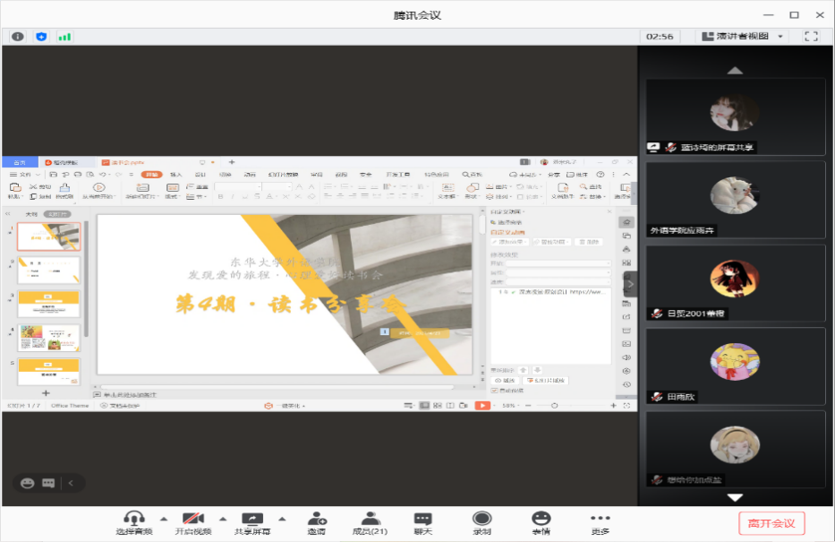 “人间四月芳菲尽,缕缕书香溢满园。”在“5·25心理健康月”到来之际,也借着4月23日——“世界读书日”这样一个特殊的日子,为了使大学生更好地了解人生的多样性,在有限的生命中体会无限的可能性,从而使身心健康完善地发展,304永利集团心声心理协会日前于腾讯会议举办了第四期“发现爱的旅程·心理读书分享会”。本次分享会由英语翻译1902班的张玮瑜同学主讲,她与大家分享的是《自控力》这本心理好书。
