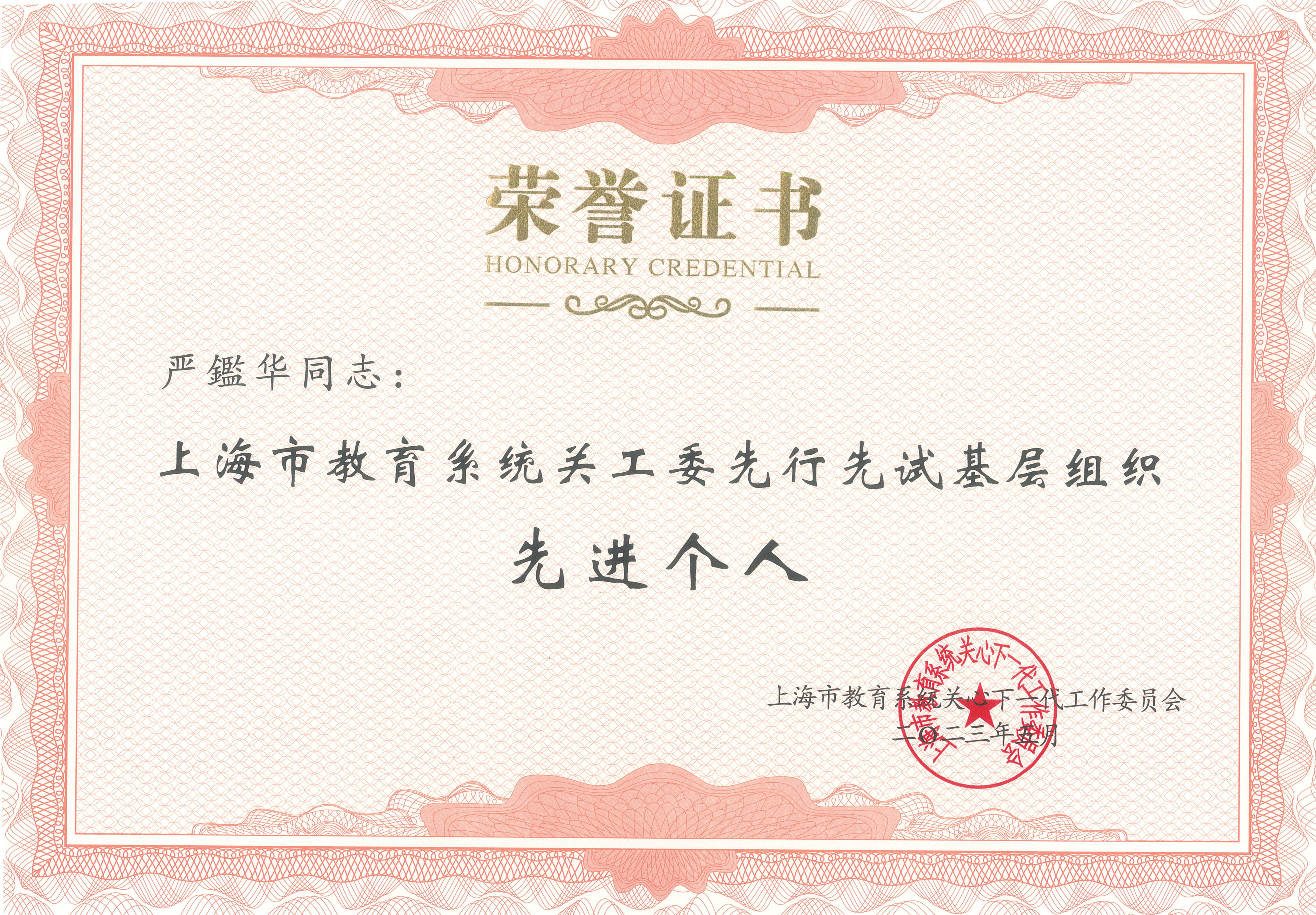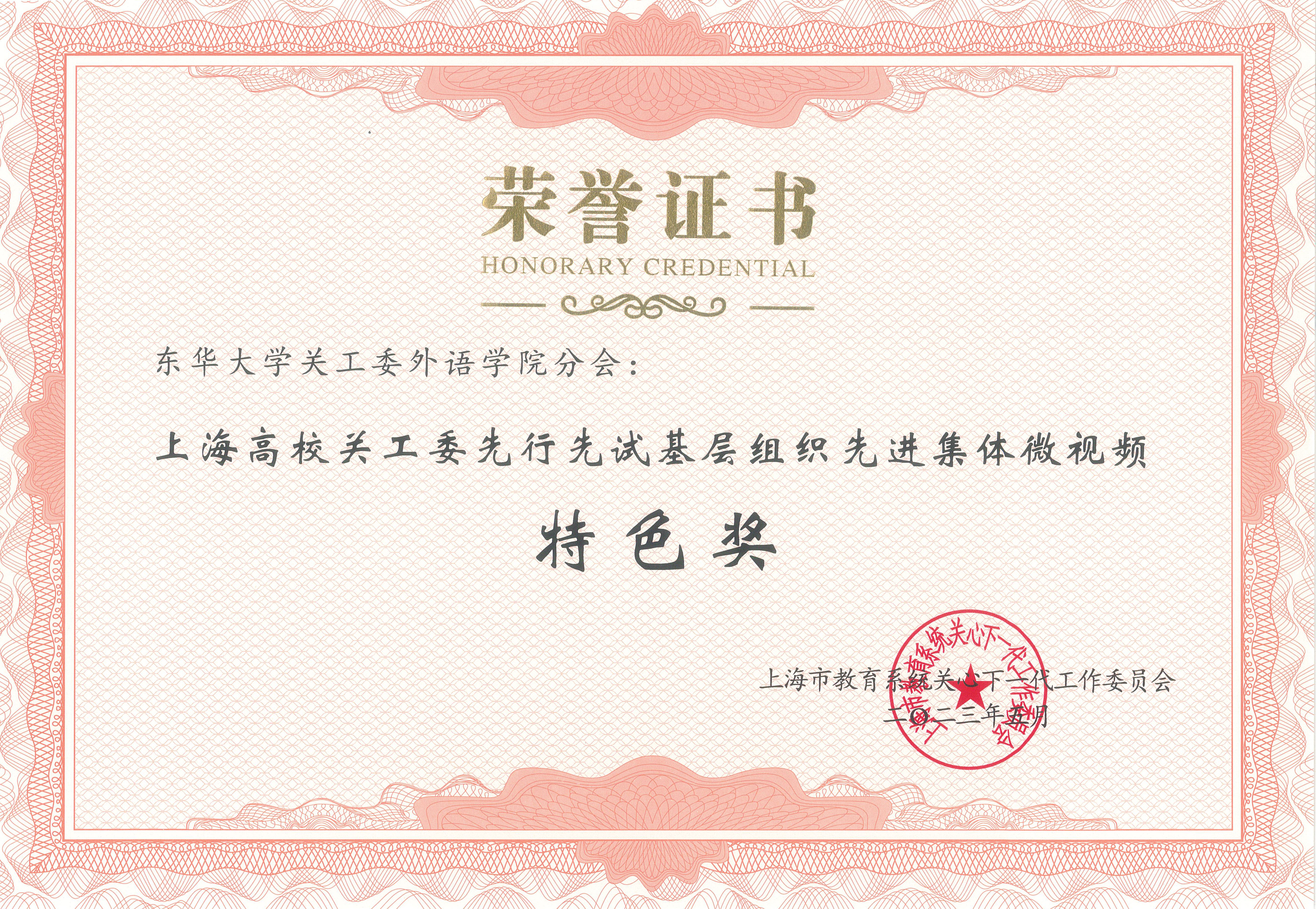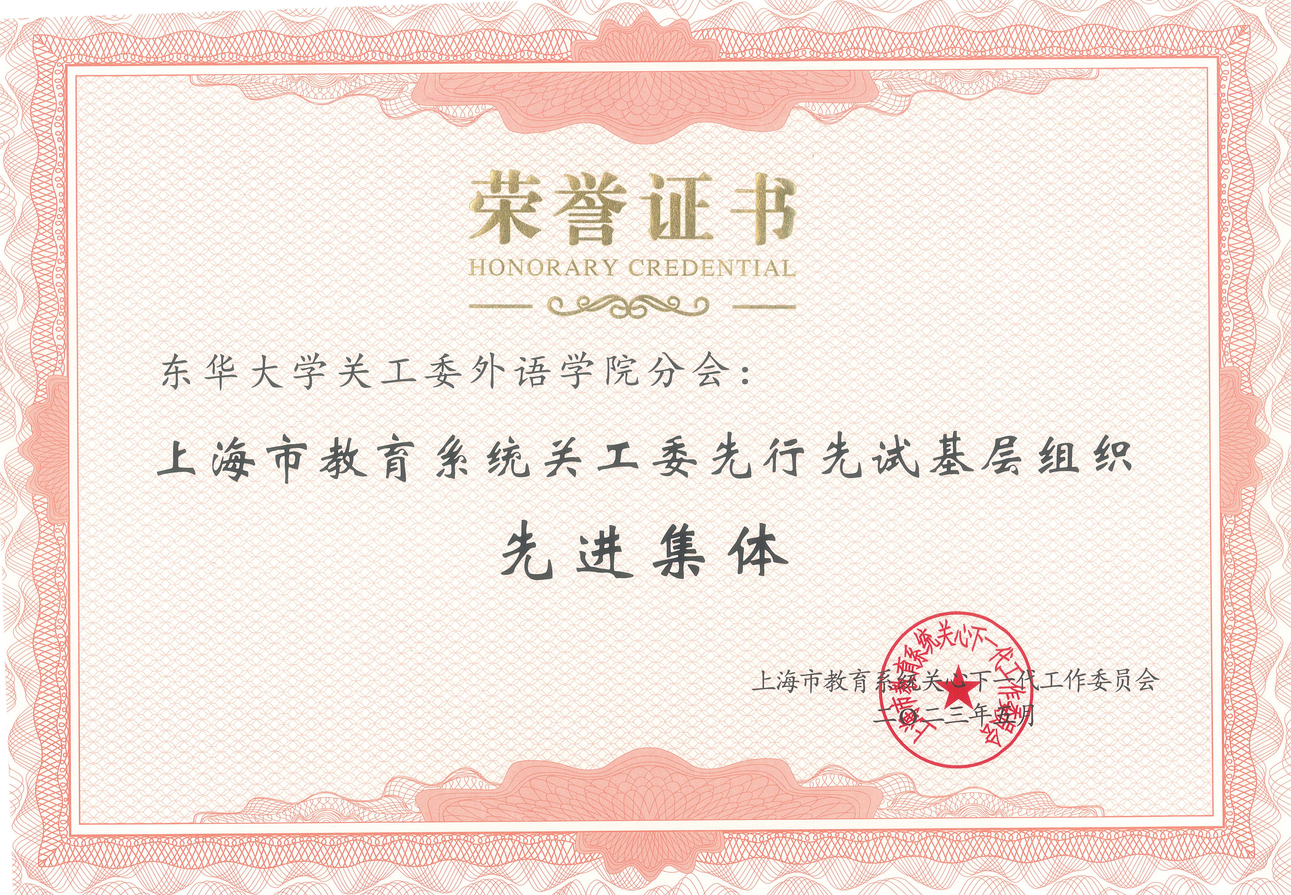 近日,上海市教卫工作党委召开2023年上海市教育系统关工委推进基层组织建设暨表彰会,我校荣获多项荣誉。外语学院关工委获评上海市教育系统关工委先行先试基层组织“先进集体”及微视频“特色奖”,严鑑华老师获评“先进个人”。