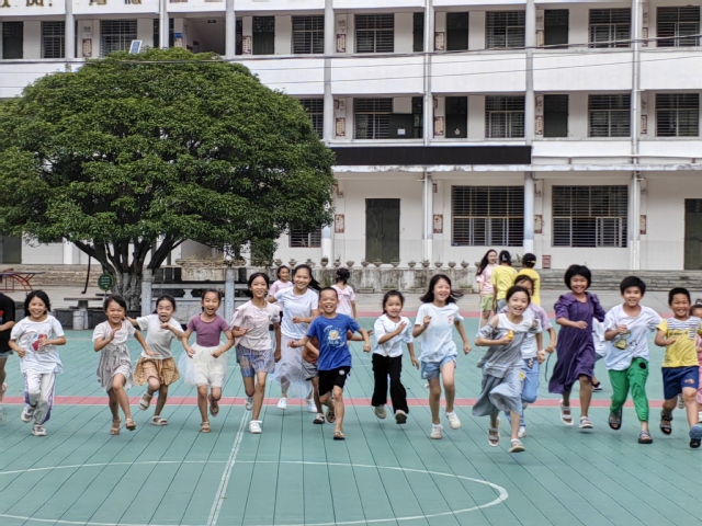 (实践团为乡村小学生上课外活动课)