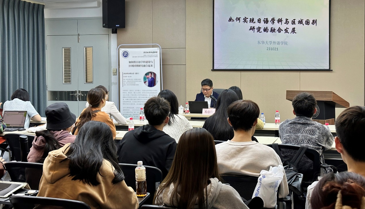 杨伯江研究员是中国社会科学院日本研究所所长、博士生导师,中华日本学会常务副会长(法人代表),中国亚洲太平洋学会副会长,中国太平洋学会常务理事,亚太安全合作理事会中国委员会委员。曾任国际关系学院教授、中国现代国际关系研究院研究员、美国布鲁金斯学会访问学者、哈佛大学费正清东亚研究中心访问学者、日本国际论坛客座研究员、日本综合研究开发机构客座研究员。讲座中,杨伯江所长从“外语一级学科下的区域国别研究”“特色化人才培养的切入点”“中国自主知识体系与国际传播”和“日语学习者的几点注意事项”四个方面对日语学科与区域国别研究的融合发展进行了精彩的阐释和分析。
