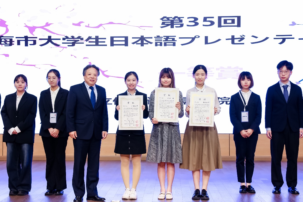 10月28日,第三十五届上海市大学生日语才能演示大赛在上海对外经贸大学举行,来自上海21所高校的日语专业本科生选手参加比赛,我院日语专业2020级学生杨佳妮同学凭借精彩的表现获得了大赛总分第三名的优异成绩。由羽毛友里惠和劳轶琛老师组成的中外教合作指导团队也获得了优秀指导教师奖。