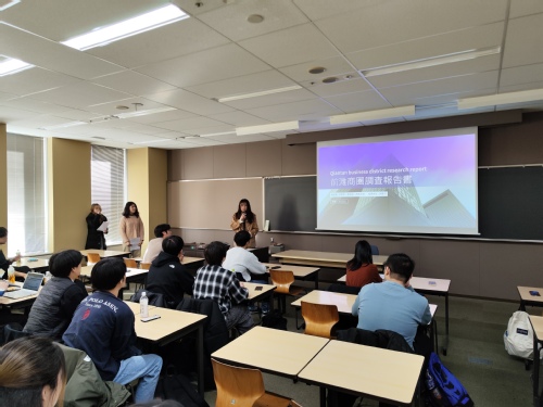 访日期间,双方围绕中日商业模式的发展新业态举行了共同研究学术发表会。发表会上,双方大学生发表交错进行。我院学生组成个小组就上海2023年新建成并投入运营的“上海前滩”“龙华会”“蟠龙天地”等商业综合体的实体商业最新动态、各类高科技设施的应用、经营理念等进行了学术分享。他们思维敏捷,具有清晰的问题意识,能学以致用,用比较流畅规范的日语展现调研成果。明治大学商学部师生对我院学生的发表产生浓厚兴趣,现场互动频繁,讨论气氛热烈。明治大学商学部也派出了三组同学进行发表,交流的主题包括新能源汽车动态、全冷链物流的商业机会等。