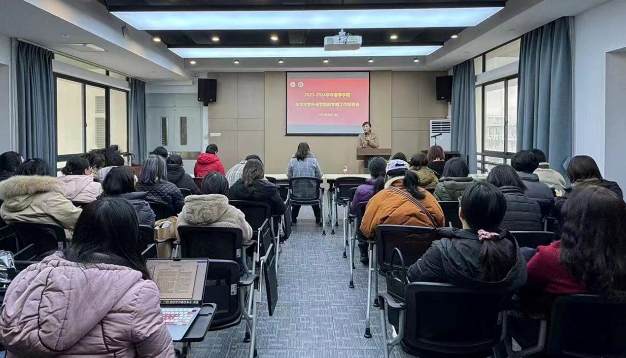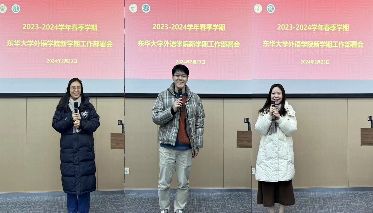 会上,英语系、日语系、大学外语部、公外研究生教研室主任分别围绕教育教学、课程建设、人才培养、学术研究、国际合作与交流等重点进行了工作交流;副院长任再新对本科教学特别是年度本科教育教学审核评估工作进行了部署;副院长(主持工作)张曦介绍了本学期学院行政工作重点及研究生、科研相关工作;党委书记徐玥指出,新的一年,学院将坚持党建引领、稳中求进、以进促稳、创新制胜的主基调,保持现有优势、放大特色优势、挖掘潜在优势、形成新的优势。最后,学院三位新进青年教师进行了个人汇报交流。