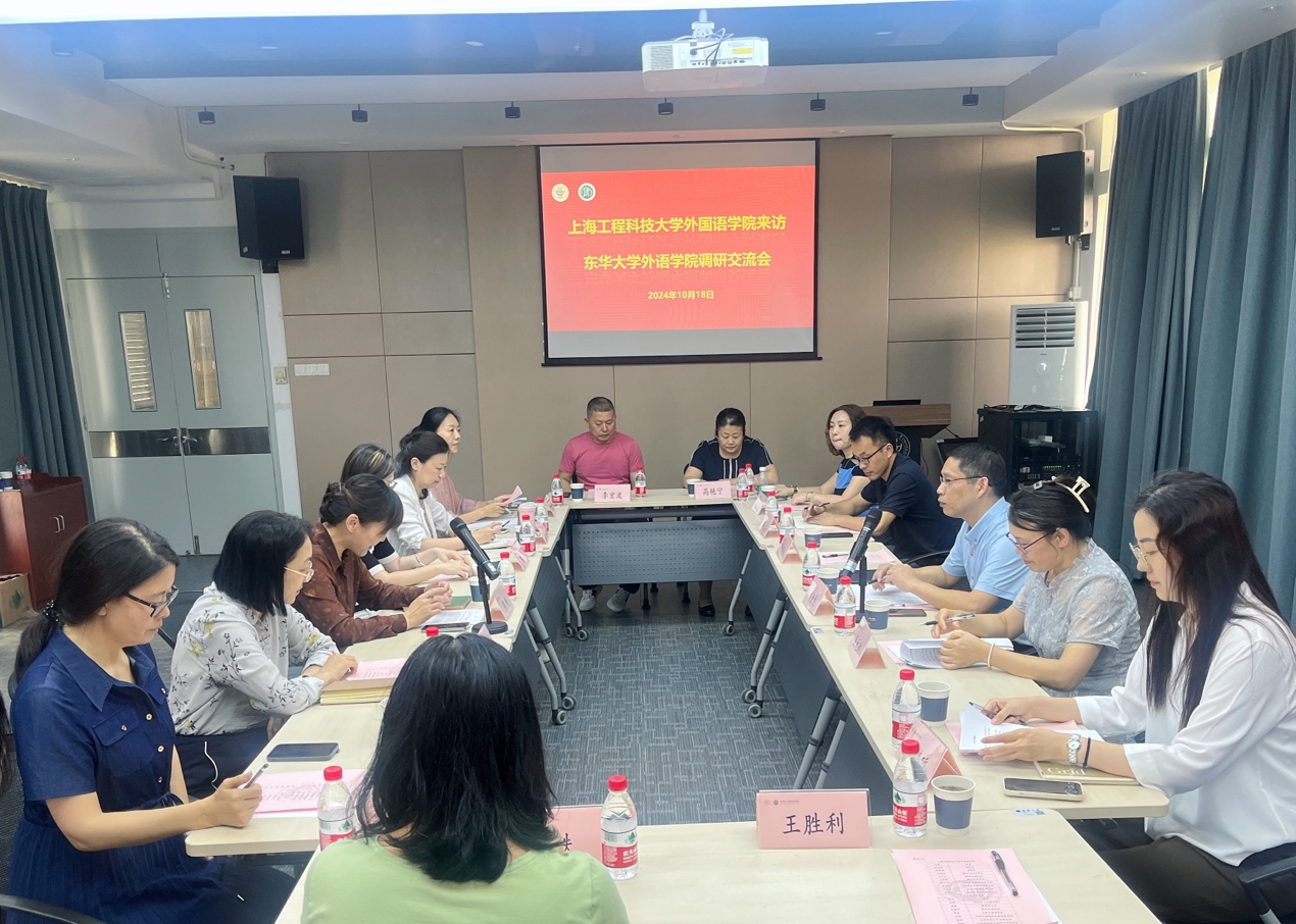 10月18日,上海工程技术大学外国语学院副院长刘金龙、杜丽娟带领团队来我院调研交流。学院副院长(主持工作)张曦及各系部负责人参加了调研交流会,就多项议题进行了广泛交流。会议由张曦主持。