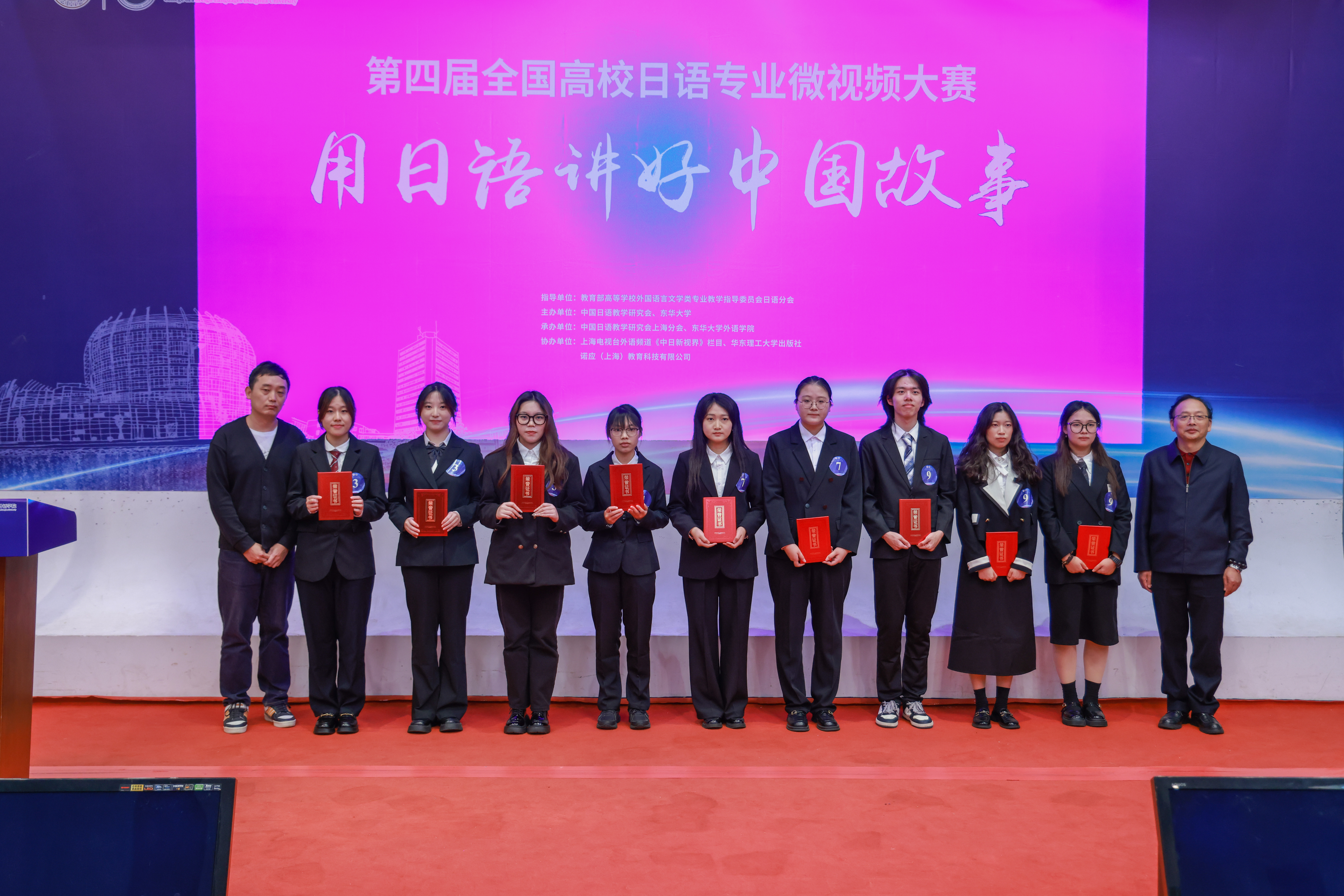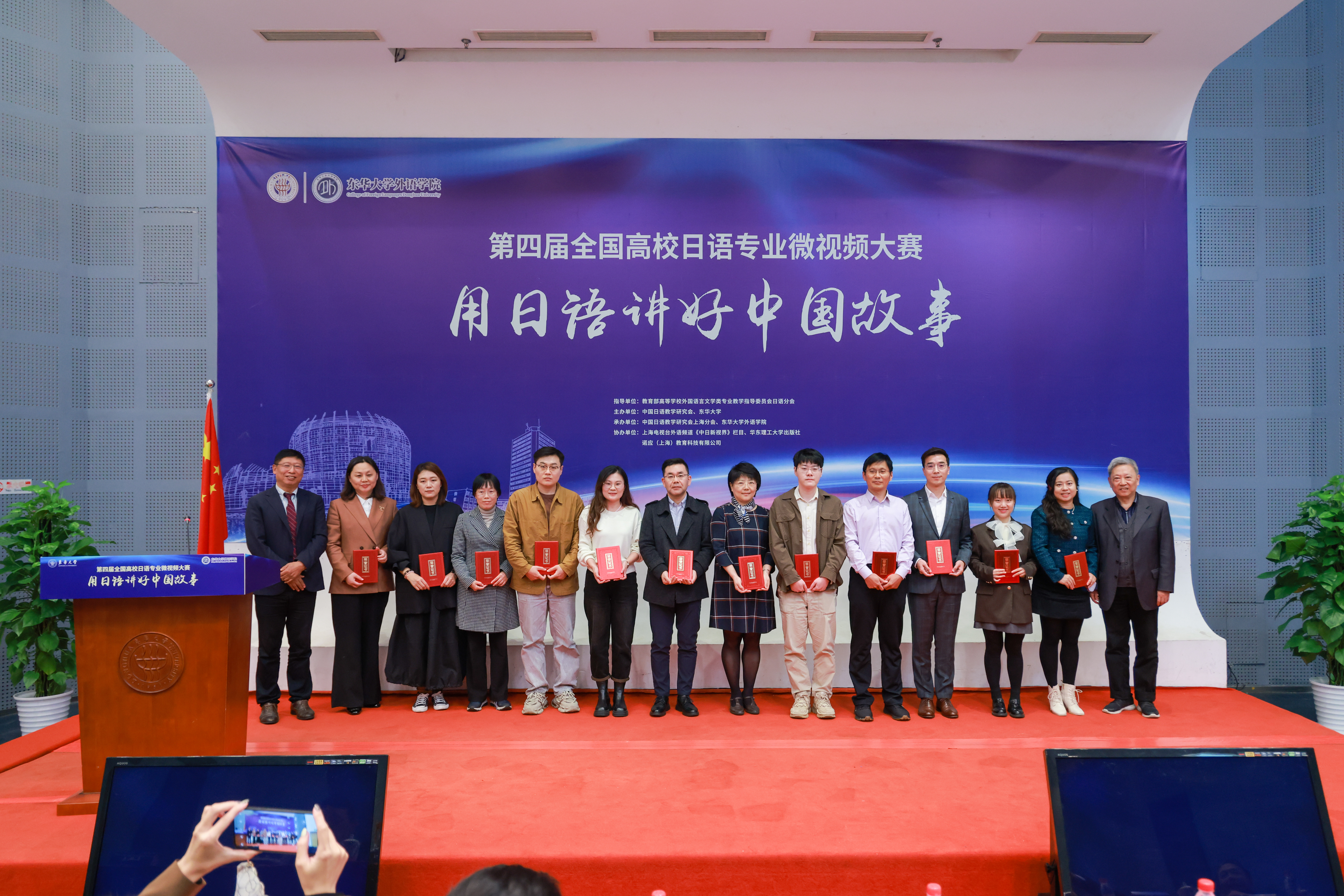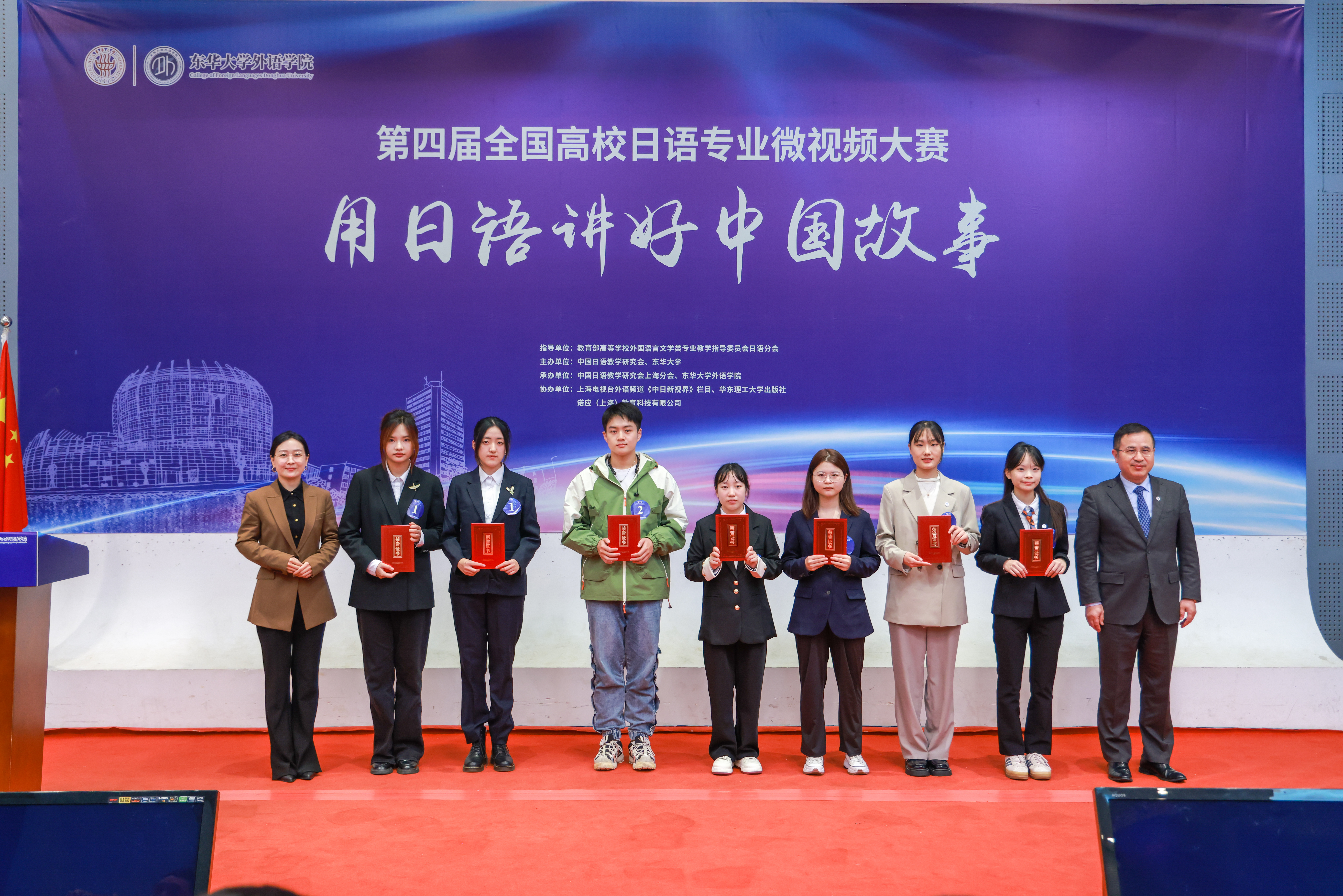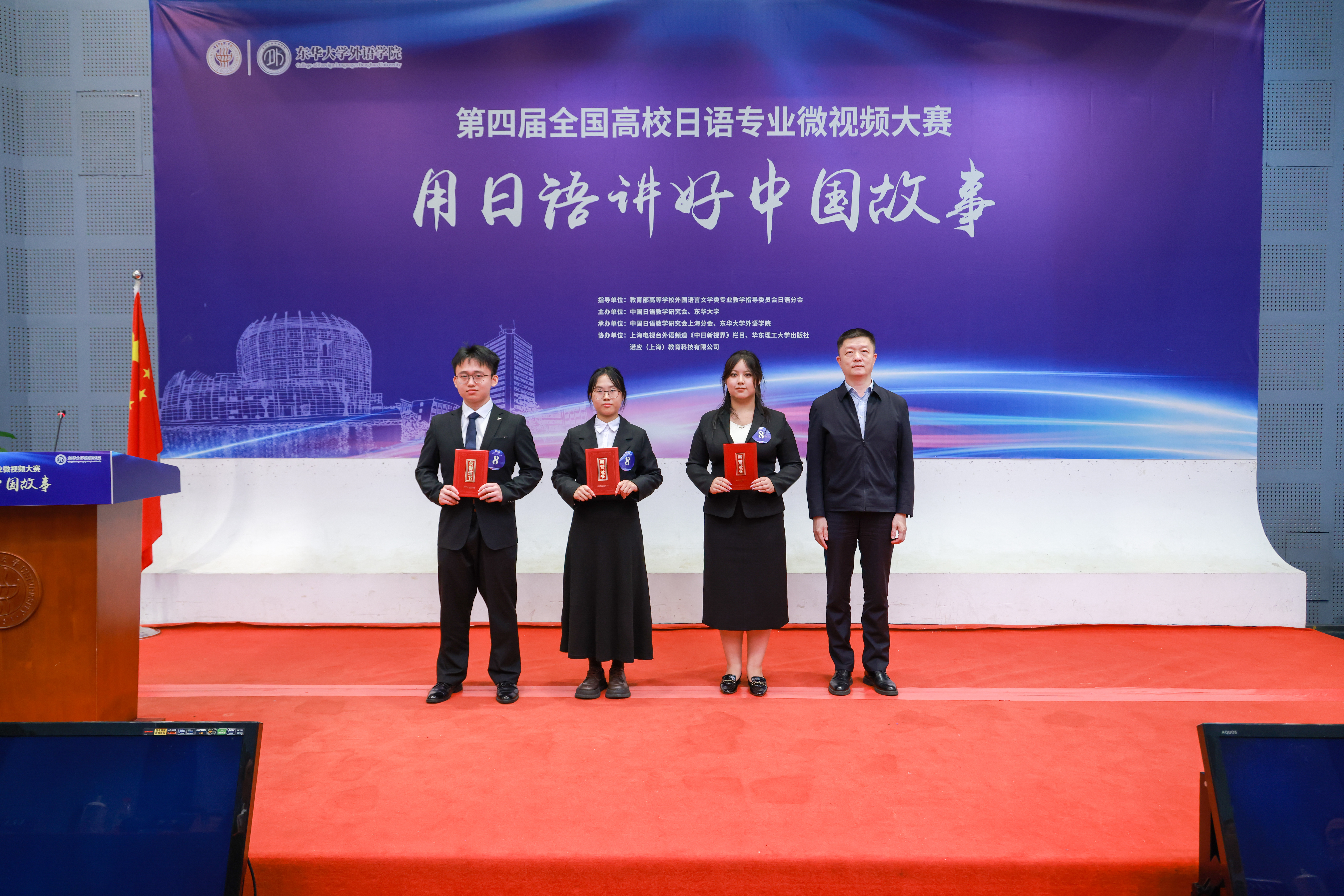 为深入贯彻落实党的二十届三中全会和全国教育大会精神,增强中华文明传播力影响力,推进文化自信自强。11月17日,第四届全国高校日语专业“用日语讲好中国故事”微视频大赛决赛在我校松江校区举行。教育部高等学校外国语言文学类专业教学指导委员会(以下简称“教指委”)日语分会主任委员、中国日语教学研究会名誉会长修刚,我校副校长陈革出席决赛开幕式并致辞。教指委日语分会原主任委员谭晶华,教指委日语分会委员、北京外国语大学日语学院院长周异夫,教指委日语分会委员、中国日语教学研究会会长陈多友,教指委日语分会委员、中国日语教学研究会上海分会会长刘晓芳等专家,我校教务处、学生处相关负责人,304永利集团党政负责人、相关协作单位负责人以及入围决赛十所高校师生等百余人与会。