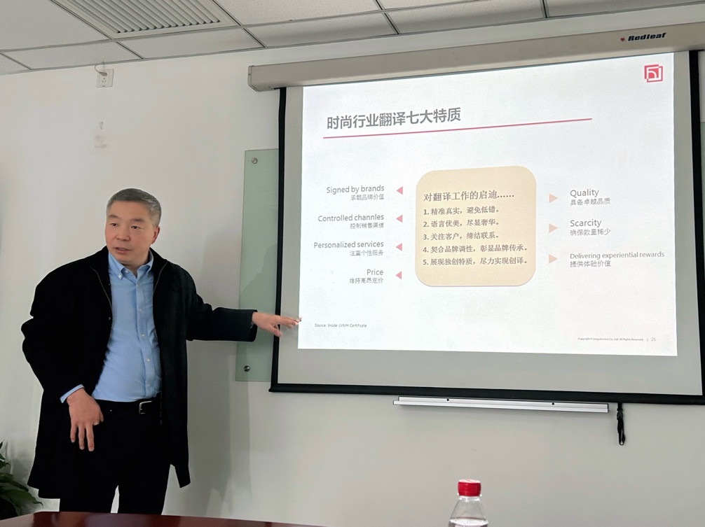 在创凌翻译总经理杨颖波的引领下,参会人员全面了解了翻译行业的变革与创新。创凌翻译作为亚洲领先的语言服务供应商,已经走过了二十多年的辉煌历程,尤其在时尚奢侈品行业的深耕,已形成独特的竞争优势。创凌翻译将翻译视为文化的传递与创意的再造,是深度的文化碰撞与品牌精神的传递。品牌传播、广告文案、产品介绍等翻译内容,需要对文化细节的精准把握与创意转化,是人工智能难以复制的“创译”领域。对于MTI研究生而言,具备跨文化交流和创意表达的能力,将成为其在行业中脱颖而出的关键竞争力。
