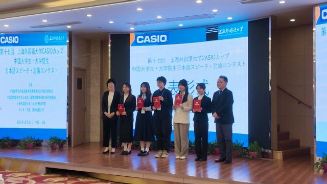 5月25日,第十七届“卡西欧杯”中国日语专业本科生·研究生演讲辩论大赛决赛在上海外国语大学举行。决赛以上午即兴演讲、下午组队辩论的方式进行,来自23所高校的24名入围选手展开了激烈角逐。最终,我院日语笔译专业2024级硕士研究生肖莹莹同学凭借扎实的日语功底和出色的思辨能力脱颖而出,荣获全国二等奖。日语系吴沁哲老师和羽毛友里惠老师荣获优秀指导教师奖。