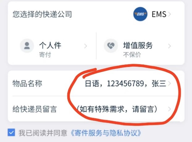 并务必在“物品名称”处备注: